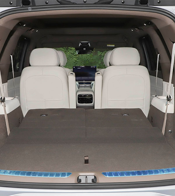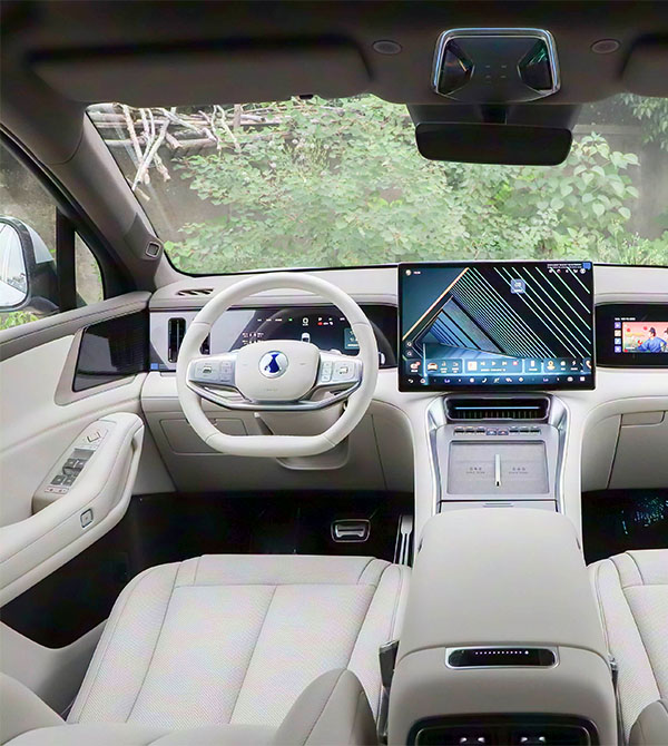 In terms of power, the Denza N8L PHEV SUV is powered by a dedicated 2.0T plug-in hybrid engine delivering up to 152kW. It is paired with the same tri-motor setup used in the Denza N9 DM, offering impressive overall performance. The “e3” badge at the rear indicates the presence of BYD’s e3 technology, which enables advanced features like “Crab Walk” and “Compass Turn.” These capabilities allow the vehicle to maneuver with ease even on narrow roads. The entire powertrain offers not only strong performance but also outstanding fuel efficiency. When operating with a depleted battery, the Denza N8L still achieves a combined fuel consumption of just 6.95L/100km—an excellent figure for such a large SUV. In contrast to many fuel-powered SUVs in the same class that can easily reach over 10L/100km, the Denza N8L is clearly a more economical and sensible choice.