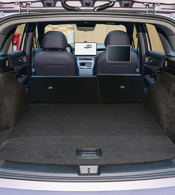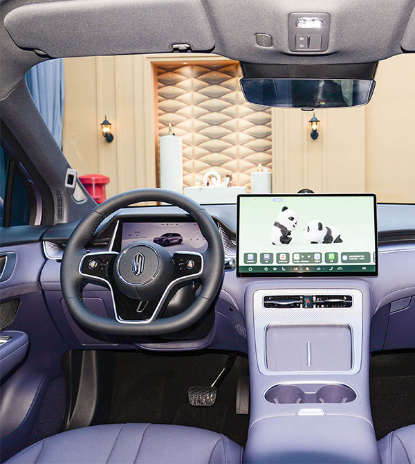 Inside, the SAIC H5 is equipped with a floating central touchscreen and an embedded full LCD instrument cluster, similar in layout to the AITO M5. It also features a star-ring light scattering element and HUAWEI SOUND audio system for an immersive audiovisual experience. The steering wheel has been upgraded to a new dual-spoke design, paired with an electronic shift lever. The hollowed-out secondary instrument panel area includes air vents, a row of chrome physical buttons, 50W wireless fast charging, dual circular cup holders, and a split armrest box, offering both practicality and premium feel.