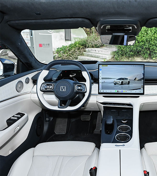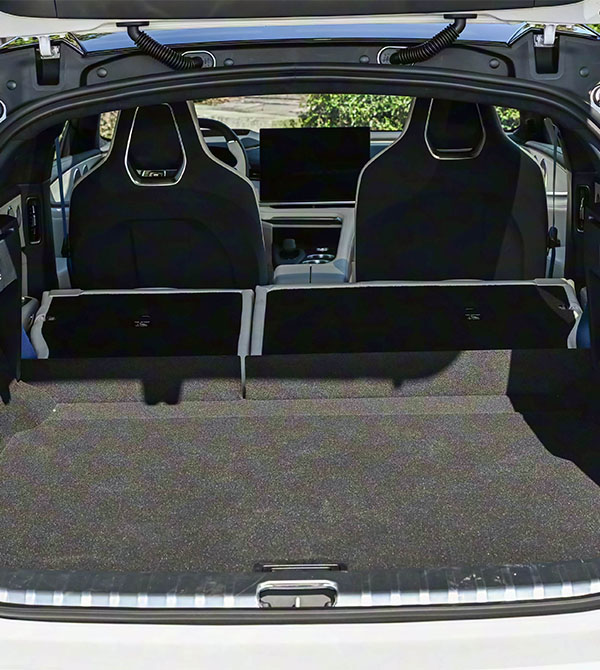 At the rear, performance and practicality merge. The dual-layer carbon fiber spoiler is a highlight—its upper hollow design channels airflow, while the lower spoiler improves stability at high speeds. The full-width LED taillights support dynamic lighting effects, and the thin brake light integrated into the wing enhances visibility. The diffuser, inspired by F1 race cars, and black trim accents amplify the sporty look. The power tailgate balances technology and convenience, offering 810L of standard cargo space expandable to 2144L with rear seats folded, easily fitting large items like skis or camping gear. The tailgate opens up to 2.1 meters and includes anti-pinch and memory settings for added safety.