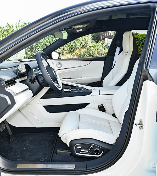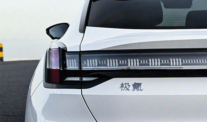 From the side, the Zeekr 001 showcases elegance and sportiness with its elongated 5018mm body and 3005mm wheelbase, presenting the perfect shooting brake stance. Carbon fiber side skirts and 22-inch racing-grade wheels with Brembo carbon-ceramic brakes highlight its performance genes, while the flush door handles and soft-close doors add practicality. The roofline flows smoothly from the B-pillar, creating a “golden ratio” design that maintains rear headroom and emphasizes dynamic coupe styling. With a 1999mm width and frameless doors, it exudes a powerful wide-body presence. Optional dual-tone body colors further accentuate individuality.