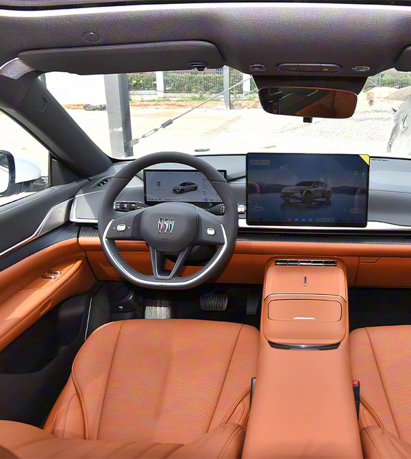 The rear design revolves around the principles of “wide, layered, and tech-forward.” The through-type taillights feature multi-layered light-guide structures, with a centrally embedded “Smart Travel Blue Light” that dynamically pulses when the driver-assistance system is activated, serving as a signature visual element. The slightly raised ducktail spoiler atop the tailgate optimizes airflow at high speeds and works with the rear bumper diffuser to form a complete aerodynamic package. The taillight strip extends down to the rear wheel arches to mitigate the visual heaviness of the fastback design. Dual chrome exhaust trims (with hidden exhaust outlets) carry the strength signature of American luxury cars. This seamless integration of functionality and artistry ensures the rear is in tune with modern minimalist EV trends while retaining Buick’s classic design language.
