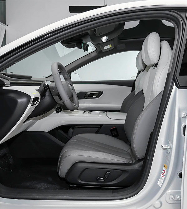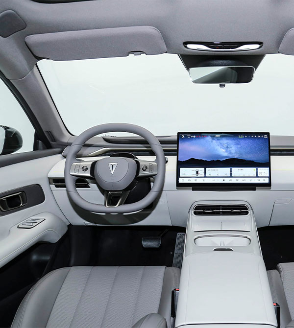 Inside, the Deepal L06 embodies a “Tianshu Intelligent Cockpit” philosophy with minimalist sophistication. Over 90% of the cabin is covered in soft-touch materials, with suede inserts on the door panels for a luxurious feel uncommon in its class. The dual-layer center console and hidden air vents create a clean, uncluttered aesthetic. A 15.6-inch adaptive “Sunflower” screen that tilts via voice command, combined with a 50-inch AR-HUD, replaces the traditional instrument cluster, displaying essential information such as speed and navigation clearly and intuitively. The flat-bottom D-shaped steering wheel and column-mounted gear selector free up storage space, while the 50W wireless charging pad and pass-through armrest add practicality to its tech-forward interior.