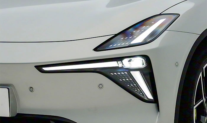 The 2026 Deepal L06 stands out as a true “masterpiece of light and shadow,” blending artistic design with cutting-edge technology. The closed front grille, paired with a trapezoidal lower air intake, sets a tone of cool sophistication. Its split headlight design is instantly recognizable—the upper dotted LED daytime running lights bloom like petals when illuminated, echoing the brand’s logo and subtly incorporating a hidden emblem in the reflection. The diamond-cut lower intake and aerodynamic front lip, combined with an active grille system, not only emphasize its sporty fastback identity but also optimize airflow efficiency. A roof-mounted LiDAR system further enhances precision and safety, detecting obstacles even in rain or low-visibility conditions—proving that its futuristic appeal is more than skin-deep.