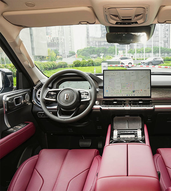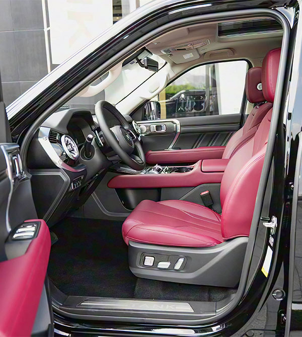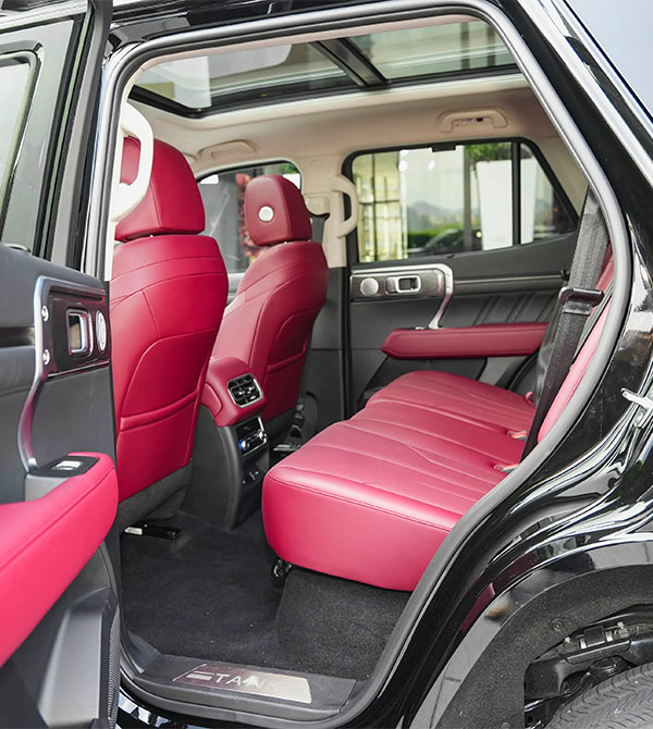 Power options include gasoline, diesel, and Hi4-T hybrid variants, plus a newly added Hi4-Z system. The Hi4-Z version shares its powertrain with the Tank 500 Hi4-Z — a 2.0T engine paired with dual electric motors (P2 and P4), mated to a 3-speed DHT with CVT. The engine produces 185 kW and 380 Nm of torque, while the P2 and P4 motors deliver 215 kW and 240 kW respectively. With a 59.05 kWh battery, the CLTC electric range reaches 200 km, offering both powerful off-road performance and impressive energy efficiency.