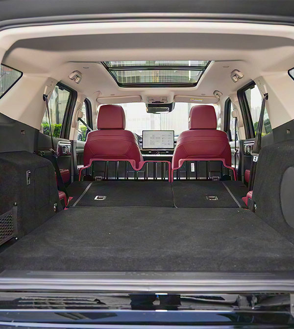 Inside, the T-shaped dashboard emphasizes horizontal layering, offering a refined and high-tech cabin layout. The 12.3-inch full LCD instrument panel and 14.6-inch central touchscreen form a dual-display setup powered by the Qualcomm Snapdragon 8155 chip. It supports continuous voice recognition and “see and say” interaction for intuitive operation. The leather-wrapped steering wheel feels solid and is electrically adjustable in four directions. Nappa perforated leather seats offer heating and ventilation; the driver’s seat adds memory, welcome entry, 4-way power lumbar support, and 8-point massage with 3 intensity levels. The rear seats recline and fold for flexible space utilization. A premium 11-speaker Infinity audio system delivers an immersive sound experience.
