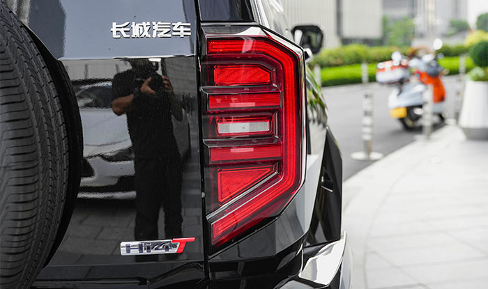 The 2026 Tank 400 Hi4-T perfectly combines ruggedness with technology in its exterior design. The bold, mech-inspired front end features a smoked black grille with thick chrome accents, instantly exuding a strong sense of power. The split LED headlamp setup serves as the highlight — the upper portion functions as the daytime running light, while the lower section handles the high and low beams, offering exceptional recognizability when illuminated. The sculpted air inlets and black skid plates on the front bumper not only enhance aerodynamics but also bring a sporty edge. The overall design inherits the tough DNA of an off-roader while integrating modern tech elements, fully aligning with the concept of a “new-energy rugged SUV.”