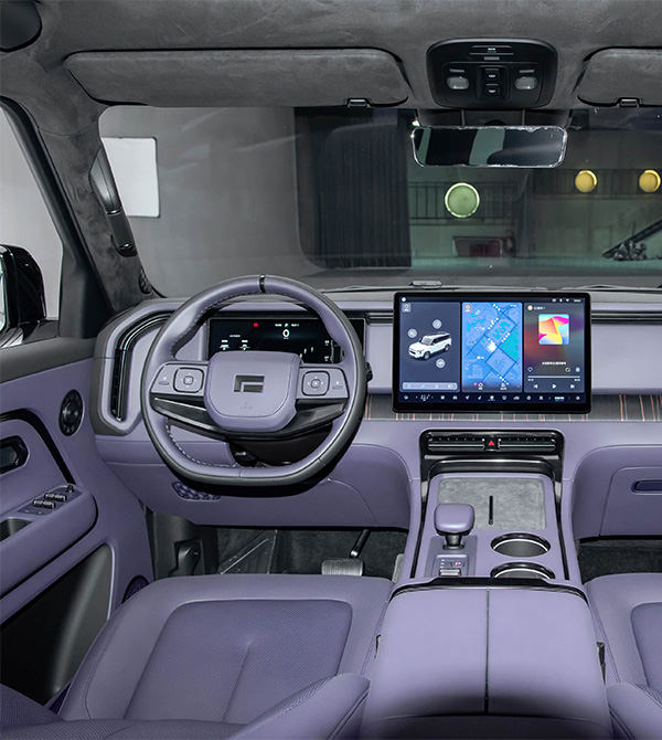 Off-road capability is a major highlight of this upgrade. The vehicle features an air suspension system with seven driving modes—Auto, Road, Mountain, Mud, Sand, Deep Snow, and Wading—automatically adjusting suspension parameters and power delivery to handle diverse terrains. The lightweight chassis made from aerospace-grade aluminum alloy ensures structural strength while reducing weight, paired with a front double-wishbone and rear H-type multi-link independent suspension for enhanced stability and ride comfort.