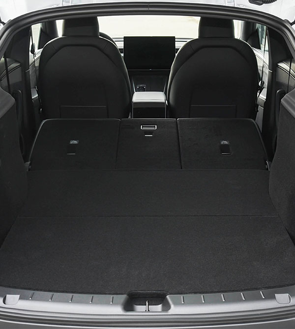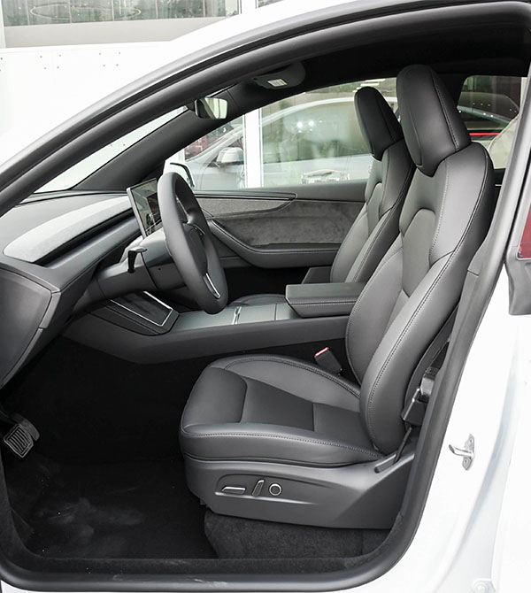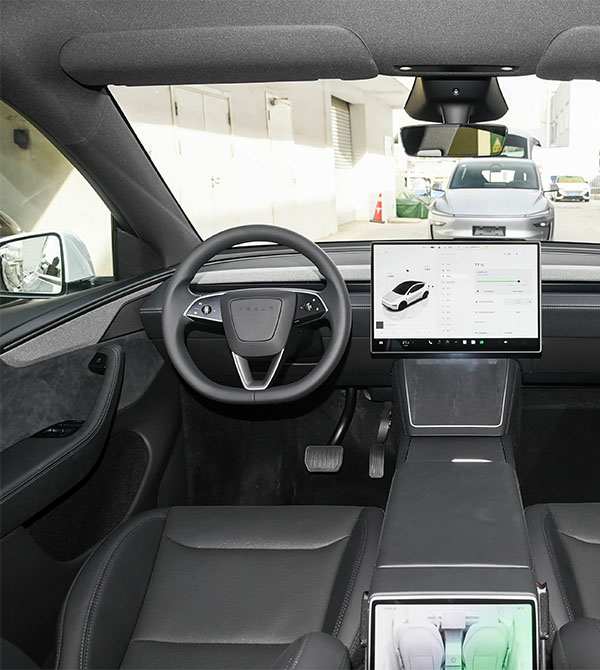 The rear continues Tesla’s signature design language, with key upgrades focused on lighting and detail refinement. The overall look is clean and elegant while retaining a strong technological feel. The full-width LED taillights use diffuse lighting technology, forming a smooth and continuous light strip when illuminated at night, offering excellent recognition without being harsh on the eyes. This improves nighttime visibility while avoiding disturbance to following vehicles. The taillight contours precisely match the rear lines, enhancing visual unity and making the rear appear fuller and more balanced. The license plate mount has been lowered to the rear bumper, freeing up tailgate space and creating a cleaner design that highlights the purity of an electric vehicle. The rear bumper is made of integrated black plastic with hidden exhaust-style decoration, aligning perfectly with the eco-friendly positioning of an EV while giving the rear a more streamlined look. Additionally, the new hands-free power tailgate greatly improves convenience. With the key present, the trunk opens automatically when approaching the rear, and the opening height can be electrically adjusted, allowing users from 155 to 190 cm tall to easily load and unload items.