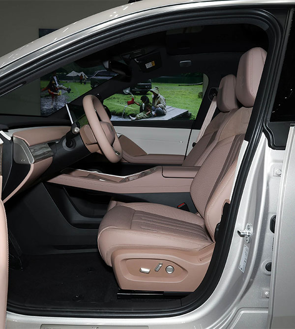 Stepping inside, the cabin design immediately impresses with its staggered color-block layout—front seats featuring front-to-back stitching and rear seats using an upper-and-lower split—creating a refined “two-sided” visual effect. This breaks away from the monotony of traditional cabin layouts and showcases craftsmanship in every detail. The Moon Banyan Brown leather steering wheel feels soft and delicate to the touch, offering a full and comfortable grip. Combined with exclusive stitching, it further elevates the sense of luxury and uniqueness inside the cabin.