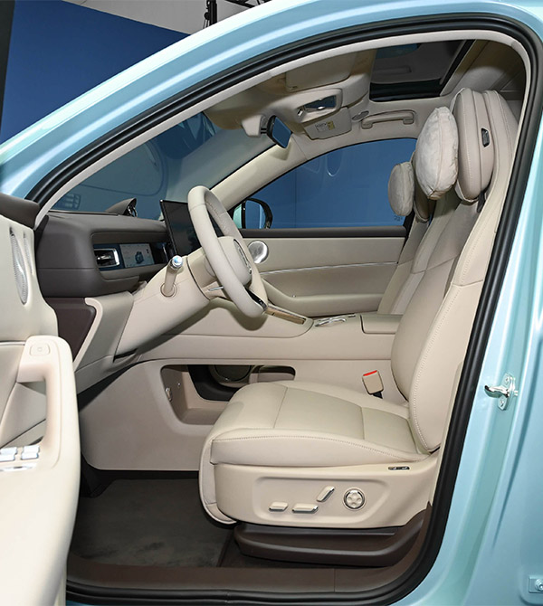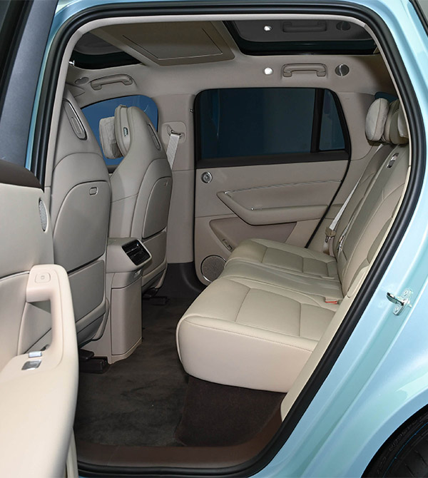 In terms of space, the AITO M6’s five-seat layout provides a spacious and comfortable riding experience. The 2900 mm wheelbase offers generous legroom for rear passengers, while the width easily accommodates three adults without feeling cramped, and the headroom remains comfortable. The seats feature a black-and-red color scheme, delivering excellent support and wrapping. Zero-gravity seats are also available as an option for the front row, ensuring comfort during long journeys. The cabin comes standard with four-zone automatic air conditioning and a panoramic sunroof, creating a bright and comfortable interior environment. In addition, it is equipped with a wide range of safety features such as AEB automatic emergency braking and BSD blind spot detection, balancing ride comfort with travel safety.
