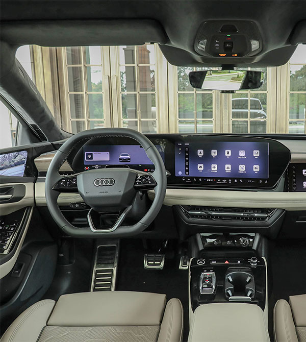 Step inside, and you can clearly feel the 2026 Audi A6L e-tron’s dual upgrade in luxury and technology. The wraparound cabin design creates a strong sense of cocooning the moment you sit in it, while the center console’s “digital stage” is a major highlight—the 14.5-inch Audi MMI panoramic display, the 11.9-inch Audi virtual cockpit, and the 10.9-inch MMI front passenger display work together to create multi-dimensional information interaction. Paired with the new UI/UX interaction system and AI smart home page, the operation feels smooth and lag-free, with a very low learning curve. It is also worth mentioning that the passenger entertainment screen comes with a shutter-style privacy design, so when the front passenger is watching videos or using apps, it will not disturb the driver. This detail is truly thoughtful.