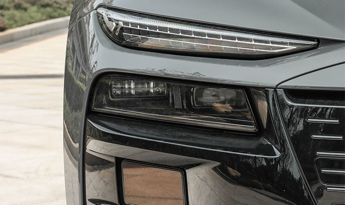 The side design perfectly balances luxury presence and aerodynamic efficiency. The 5,073 mm long body does not adopt the rigid styling of a traditional executive sedan, but instead incorporates a coupe-style fastback design, paired with a shark-fin antenna and electronic side mirrors. Every detail serves to reduce wind resistance. The 20-inch petal-style wheels are eye-catching, with front tires sized 245/40 R21 and rear tires 275/35 R21. Combined with semi-hidden door handles, the car not only looks more refined, but also further improves aerodynamic performance. The 3,076 mm wheelbase, together with the black privacy glass, instantly enhances the dignified feel of an executive sedan, while the addition of second-generation streaming side mirrors not only elevates the overall sense of technology, but also genuinely reduces drag, achieving a balance of style and practicality.