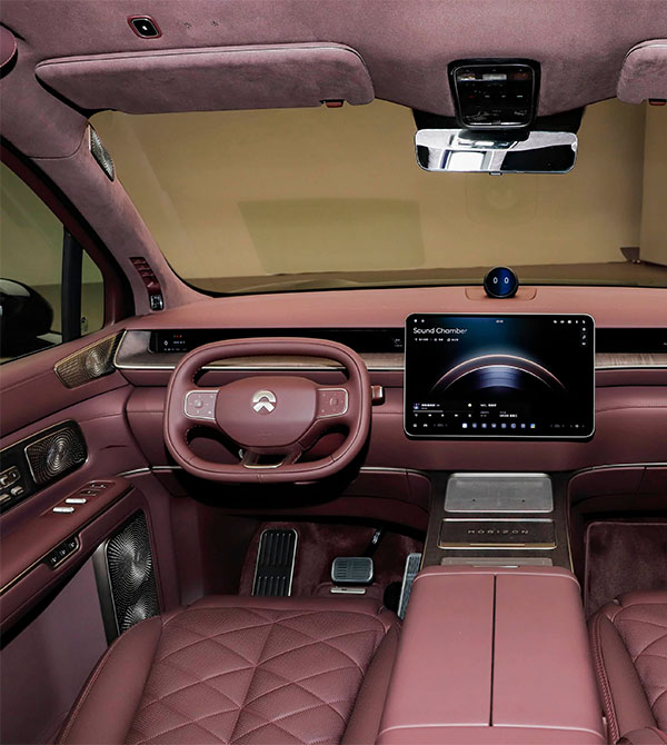 The seating experience is one of the core highlights of the NIO ES9. Its aviation-style executive seats are built on NIO’s self-developed high-end seating platform, delivering top-tier texture and comfort. The second-row zero-gravity executive seats feature a continuous seat surface up to 2.3 meters long, combined with a full-body 42-point deep massage system, including a 20-point mechanical foot massage. Whether for long-distance travel or daily commuting, it effectively relieves fatigue and provides a first-class cabin-level experience. The cabin also debuts array-type LC intelligent privacy dimming windows, offering the fastest tint-changing speed in the industry, allowing quick switching between transparent and private modes while balancing lighting and privacy. The addition of an intelligent executive center console further enhances the experience, equipped with dual 16-inch exclusive executive screens, a high-definition video conferencing system, and a dedicated magnetic tea table, making mobile office work and business reception more composed and refined, fully reflecting executive-class luxury.