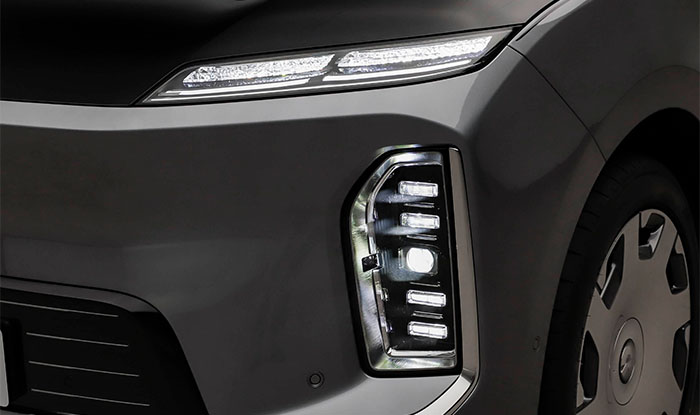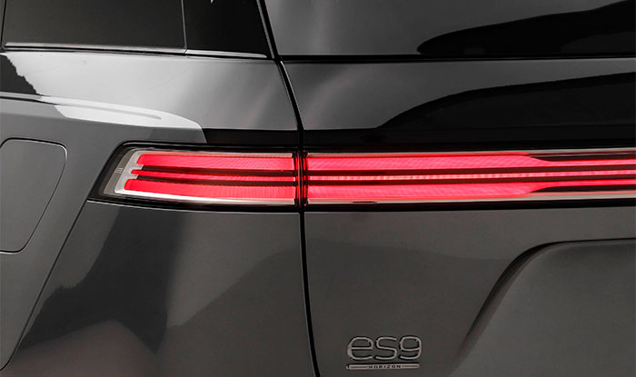 The NIO ES9 2026 adopts the brand’s latest Shark Nose front design, with a clean and sharp closed-off front fascia. Paired with angular split ultra-clear crystal daytime running lights, it immediately conveys a strong flagship presence. Unlike conventional lighting designs, crystal elements are ingeniously integrated inside the lamp housing, delivering a refined texture that breaks the traditional notion that functionality outweighs aesthetics. Referring to the configuration level of the current NIO ES8, this lighting system will most likely feature three sets of welcome lighting effects, three groups of projection welcomes, and two sets of projection light shows. It can project dynamic light and shadow up to 10 meters onto a wall, synchronized with music to present a 20–30 second immersive welcome experience, making every unlock moment full of ceremony.