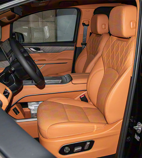 In exterior design, the 2025 GWM WEY Gaoshan 7 continues the brand’s signature “Mountain and Flowing Water” design language. A large, densely patterned chrome grille blends seamlessly with smoked headlamp clusters; the vertical slats resemble cascading waterfalls, conveying the composed presence of a business MPV while four distinctive exterior colors — Deep Space Black, Canglang Green, and two others — precisely meet family buyers’ aesthetic preferences. The front bumper uses a three-section air-guide channel design accented by high-gloss chrome trim, which reduces drag and enriches the front-end visual layering. A roof-integrated LiDAR quietly signals its advanced intelligent-driving capability; the overall form perfectly interprets the design spirit of “understated richness.”