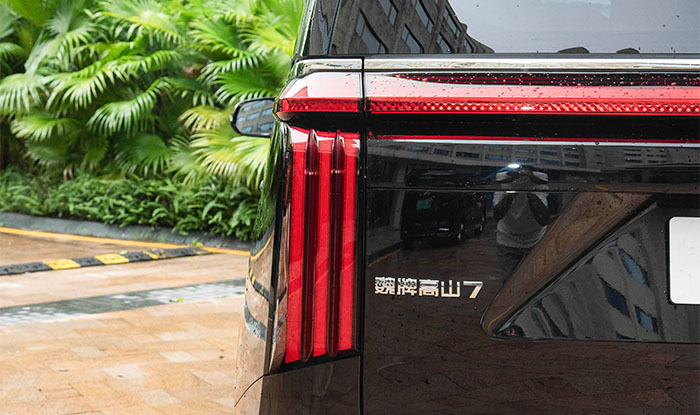 At the rear, a smoked full-width taillight extends into the fenders and visually widens the stance. Chrome trim on the rear bumper echoes the front design; with redundant decoration reduced, the overall lines look cleaner and sharper. Although the trunk in standard configuration holds seven 20-inch suitcases (five fewer than the Gaoshan 8), an innovative recessed storage compartment compensates for the lost volume and suits family users who prefer practicality over excess.