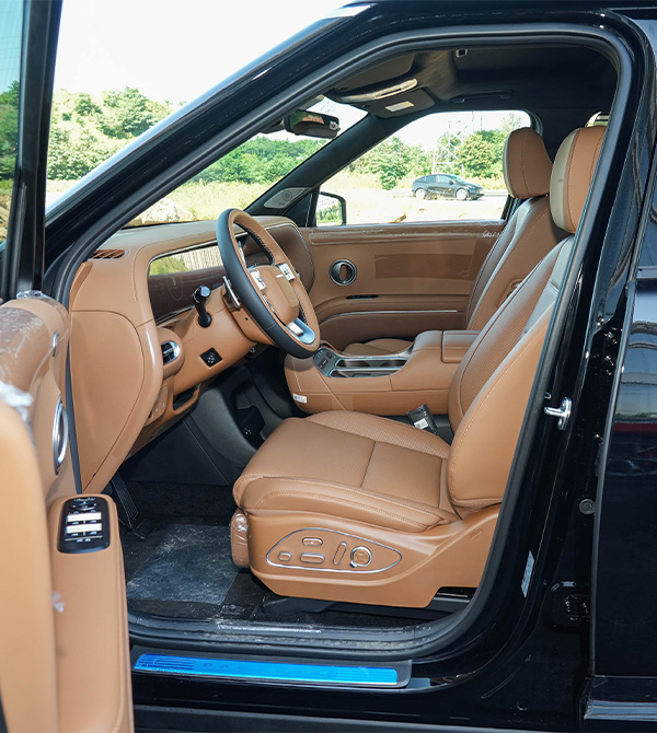 Inside, the cabin exudes luxury and openness, with attention to detail reflecting Hyundai’s care for occupants. The dashboard and door panels use large areas of soft-touch materials with delicate stitching, providing a warm and refined feel. Dual 12.3-inch panoramic curved screens dominate the interior, offering high-resolution displays and three-finger swipe functionality to easily transfer information between the central screen and the instrument cluster, enhancing convenience and interaction.