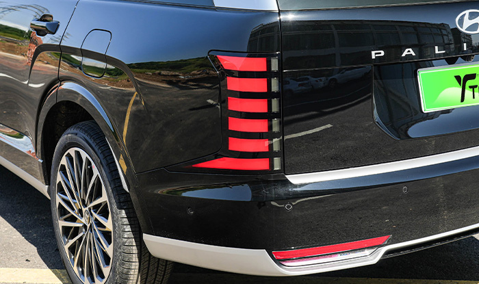 At the rear, the 2026 Hyundai Palisade adopts a “simple yet refined” design, maintaining high recognition while showing sophistication. The full-width LED taillight is the key highlight, producing a continuous and even light strip at night that increases rear visibility and driving safety. A small ducktail on the trunk adds a sporty touch, while the dual exhaust emphasizes the vehicle’s performance. The rear bumper uses scratch-resistant black plastic, balancing practicality and aesthetics, and protecting against minor impacts. Overall, the rear combines rugged SUV character with luxury refinement, creating a distinctive design signature among competitors.