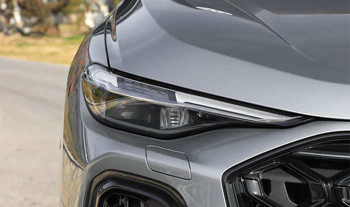 Complementing this, the headlights are fully LED smoked, integrating high-precision lenses and through-type daytime running lights, with sharp and slender lines that form a highly recognizable light effect when illuminated, exuding a sense of technology. Notably, large air channels are positioned on the fenders beside the grille, decorated with black honeycomb structures. These enrich the visual layering of the front while providing a concealed and functional integration space for the high-level driver-assistance version’s LiDAR, perfectly blending design aesthetics with practicality. The flat rectangular intake at the bottom of the front further widens the lateral visual width, and paired with the sport kit on both sides, fully conveys the vehicle’s sporty character. This design language, where dominance meets technology, allows the all-new Audi Q5L to stand out effortlessly in its class.