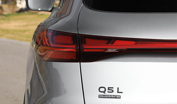The license plate frame area uses a recessed layered design, complemented by surrounding chrome trim, adding visual depth. The lower bumper features a sporty diffuser kit, and the exhausts adopt a dual side, dual outlet layout, with chrome trim enhancing both sportiness and refinement. Overall, the rear of the all-new Audi Q5L balances aesthetics, performance, and safety, meeting modern consumers’ expectations for luxury SUVs.