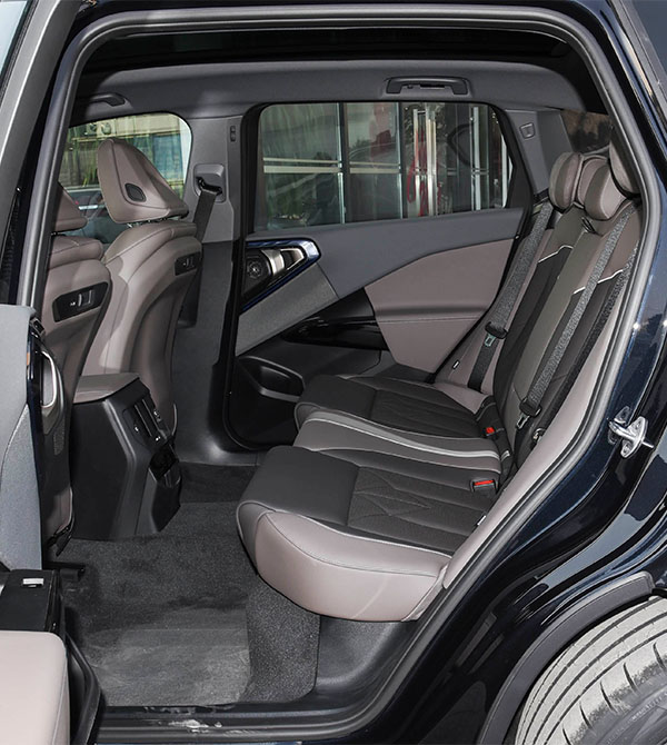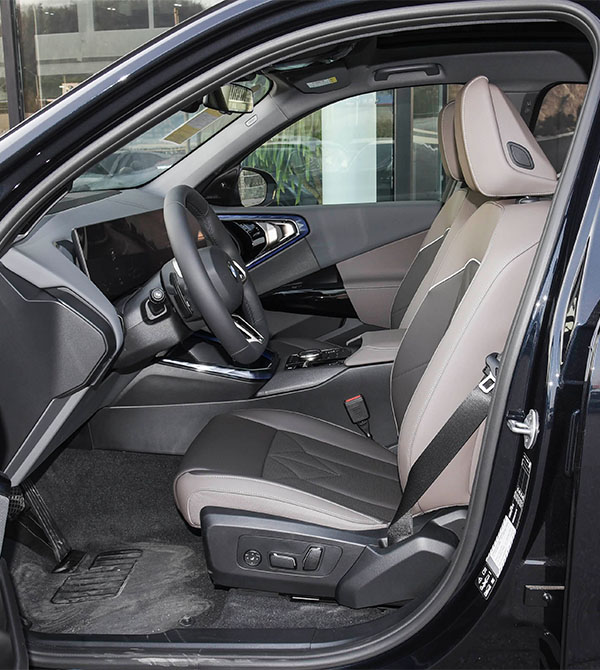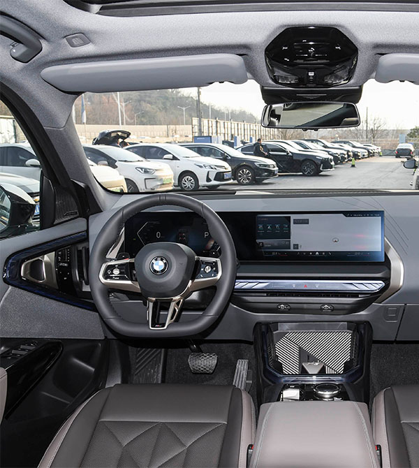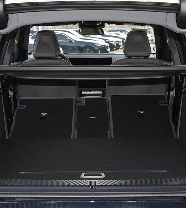 Inside the cabin, the asymmetrical and robust center console design delivers strong visual impact. The floating curved display, consisting of a 14.9-inch central touchscreen and a 12.3-inch digital instrument cluster, forms the interior’s core. The upgraded iDrive 9 system offers significantly enhanced computing power, supporting no-wake-word voice commands, four-zone interaction, and continuous “one-command, three-step” dialogue, with response speed greatly improved over the previous generation. The crystal-style gear selector paired with metallic buttons integrates luxury details into every operation. The 2975 mm wheelbase delivers a class-above spatial experience, with rear knee room exceeding one meter, approaching the executive-level comfort of the standard-wheelbase X5. The extended and thickened dual-tone seats balance support and comfort, remaining fatigue-free even during long journeys. The trunk offers a standard capacity of 550 L, expandable to 1600 L, delivering equally impressive cargo capability.