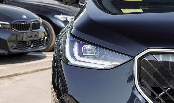 The 2026 BMW X3 makes a striking debut with the brand-new family “monolithic” design philosophy, perfectly blending a strong sense of technology with a sporty presence. The front fascia centers around a split illuminated kidney grille, where intersecting horizontal and vertical geometric lines are combined with obsidian-textured three-dimensional inserts. While delivering a high level of refinement, the design cleverly conceals cameras and radar sensors. The illuminated BMW emblem positioned at the center of the grille significantly enhances nighttime recognition once lit. On both sides, the dual L-shaped headlights extend rearward like flowing ribbons, featuring LED light sources with adaptive high/low beam and cornering functions, offering a wide illumination range while appearing light and dynamic. The three-section front bumper design is highly expressive, with sharp air inlets on both sides optimizing aerodynamic performance, while the silver skid plate at the bottom adds an off-road touch, ensuring both presence and technology are fully on display.