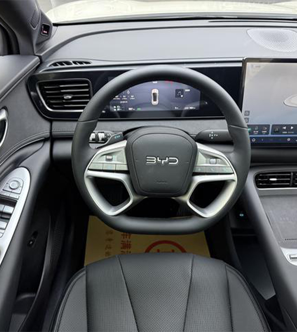 Standard configuration includes the DiLink 100 intelligent cockpit system, supporting 5G vehicle connectivity and OTA (Over-The-Air) upgrades, remote control via mobile app, multi-area continuous voice recognition control, full-vehicle Wi-Fi hotspot, and in-vehicle entertainment.