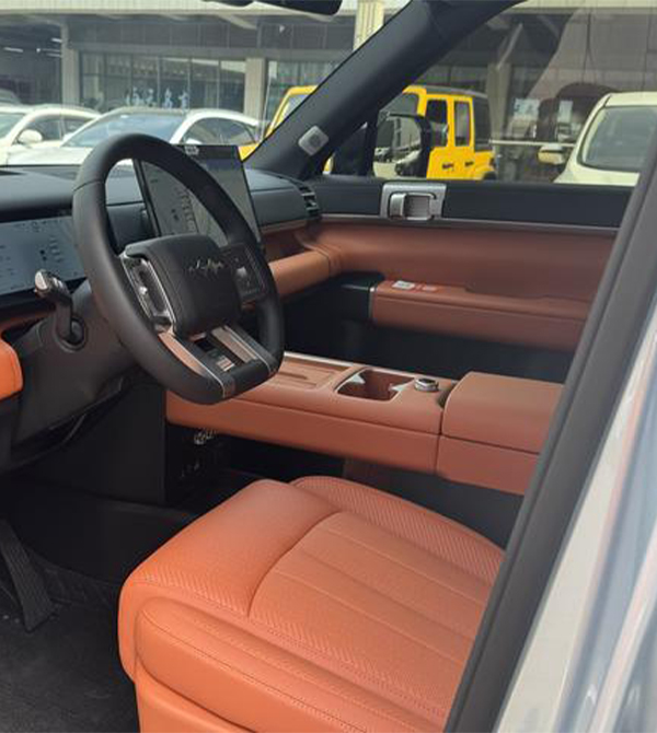 Today we are introducing a highly cost-effective used vehicle — the Fangchengbao Titanium 7 PHEV 2025 AWD Ultra version with a 190 km electric range. It was first registered on March 23, 2026, and has only 200 km on the odometer, making it essentially a nearly new car. The exterior comes in a classic silver-grey color, paired with an orange interior, giving the vehicle a balanced look that is both elegant and steady.